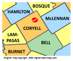 | current | ★ Approved revision 05:24, 14 June 2018 | 239 × 200 (36 KB) | Dotxinxoz (talk | contribs) | Map courtesy of [https://www.digital-topo-maps.com/county-map/Texas.shtml Digital-Topo-Maps.com]. Copyright 2005.<br> Category:Texas Maps Category:Coryell County, Texas |