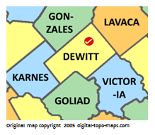 | current | ★ Approved revision 10:14, 14 June 2018 | 219 × 192 (30 KB) | Dotxinxoz (talk | contribs) | Map courtesy of [https://www.digital-topo-maps.com/county-map/Texas.shtml Digital-Topo-Maps.com]. Copyright 2005.<br> Category:Texas Maps Category:De Witt County, Texas |