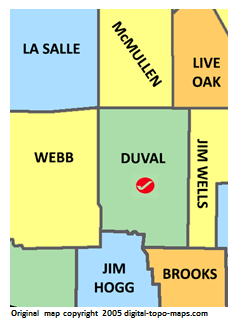 | current | ★ Approved revision 10:22, 14 June 2018 | 238 × 325 (25 KB) | Dotxinxoz (talk | contribs) | Map courtesy of [https://www.digital-topo-maps.com/county-map/Texas.shtml Digital-Topo-Maps.com]. Copyright 2005.<br> Category:Texas Maps Category:Duvall County, Texas |