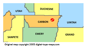 | current | ★ Approved revision 09:50, 31 August 2018 | 300 × 170 (17 KB) | Bethcottam (talk | contribs) | Map courtesy of [https://www.digital-topo-maps.com/county-map/utah.shtml]. Copyright 2005.<br> Category:Utah Maps Category:Carbon County, Utah |