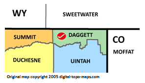 | current | ★ Approved revision 10:00, 31 August 2018 | 296 × 169 (17 KB) | Bethcottam (talk | contribs) | Map courtesy of [https://www.digital-topo-maps.com/county-map/utah.shtml]. Copyright 2005.<br> Category:Utah Maps Category:Daggett County, Utah |