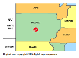| current | ★ Approved revision 21:45, 1 September 2018 | 278 × 203 (15 KB) | Bethcottam (talk | contribs) | Map courtesy of [https://www.digital-topo-maps.com/county-map/utah.shtml]. Copyright 2005.<br> Category:Utah Maps Category:Millard County, Utah |