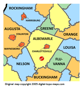 Thumbnail for version as of 20:01, 13 December 2018268 × 287 (58 KB)Stais (talk | contribs)Map courtesy of [https://www.digital-topo-maps.com/county-map/virginia.shtml Digital-Topo-Maps.com]. Copyright 2005.<br> Category:Virginia Maps Category:Albemarle County, Virginia