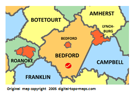 | 13:48, 21 December 2018 | 269 × 191 (36 KB) | Stais (talk | contribs) | Map courtesy of [https://www.digital-topo-maps.com/county-map/virginia.shtml Digital-Topo-Maps.com]. Copyright 2005.<br> Category:Virginia Maps Category:Bedford County, Virginia Genealogy | ||