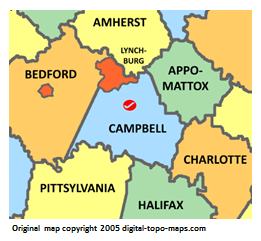| current | ★ Approved revision 20:55, 13 December 2018 | 261 × 241 (42 KB) | Stais (talk | contribs) | Map courtesy of [https://www.digital-topo-maps.com/county-map/virginia.shtml Digital-Topo-Maps.com]. Copyright 2005.<br> Category:Virginia Maps Category:Campbell County, Virginia |