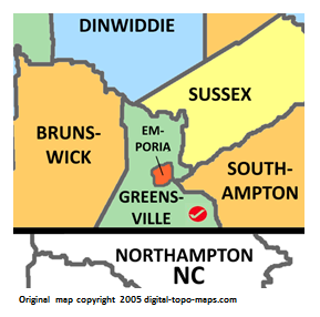 | current | ★ Approved revision 16:19, 15 December 2018 | 289 × 286 (41 KB) | Stais (talk | contribs) | Map courtesy of [https://www.digital-topo-maps.com/county-map/virginia.shtml Digital-Topo-Maps.com]. Copyright 2005.<br> Category:Virginia Maps Category:Greensville County, Virginia |
