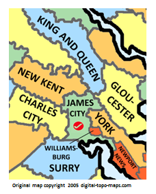 | current | ★ Approved revision 16:52, 15 December 2018 | 228 × 282 (65 KB) | Stais (talk | contribs) | Map courtesy of [https://www.digital-topo-maps.com/county-map/virginia.shtml Digital-Topo-Maps.com]. Copyright 2005.<br> Category:Virginia Maps Category:James City County, Virginia |