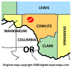 | current | ★ Approved revision 07:43, 10 April 2018 | 252 × 239 (26 KB) | Djheaven (talk | contribs) | Map courtesy of [https://www.digital-topo-maps.com/county-map/washington.shtml Digital-Topo-Maps.com]. Copyright 2005.<br> Category:Washington Maps Category:Cowlitz County, Washington |