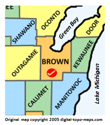 | current | ★ Approved revision 15:55, 24 November 2018 | 219 × 248 (38 KB) | Stais (talk | contribs) | Map courtesy of [https://www.digital-topo-maps.com/county-map/wisconsin.shtml Digital-Topo-Maps.com]. Copyright 2005.<br> Category:Wisconsin Maps Category:Brown County, Wisconsin |