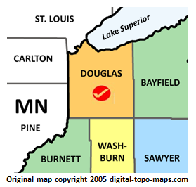 | current | ★ Approved revision 16:15, 24 November 2018 | 279 × 266 (29 KB) | Stais (talk | contribs) | Map courtesy of [https://www.digital-topo-maps.com/county-map/wisconsin.shtml Digital-Topo-Maps.com]. Copyright 2005.<br> Category:Wisconsin Maps Category:Douglas County, Wisconsin |