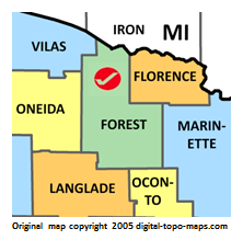 | current | ★ Approved revision 16:21, 24 November 2018 | 222 × 219 (25 KB) | Stais (talk | contribs) | Map courtesy of [https://www.digital-topo-maps.com/county-map/wisconsin.shtml Digital-Topo-Maps.com]. Copyright 2005.<br> Category:Wisconsin Maps Category:Forest County, Wisconsin |