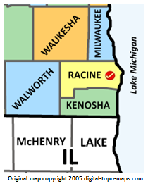 | current | ★ Approved revision 18:17, 24 November 2018 | 210 × 264 (28 KB) | Stais (talk | contribs) | Map courtesy of [https://www.digital-topo-maps.com/county-map/wisconsin.shtml Digital-Topo-Maps.com]. Copyright 2005.<br> Category:Wisconsin Maps Category:Racine County, Wisconsin |