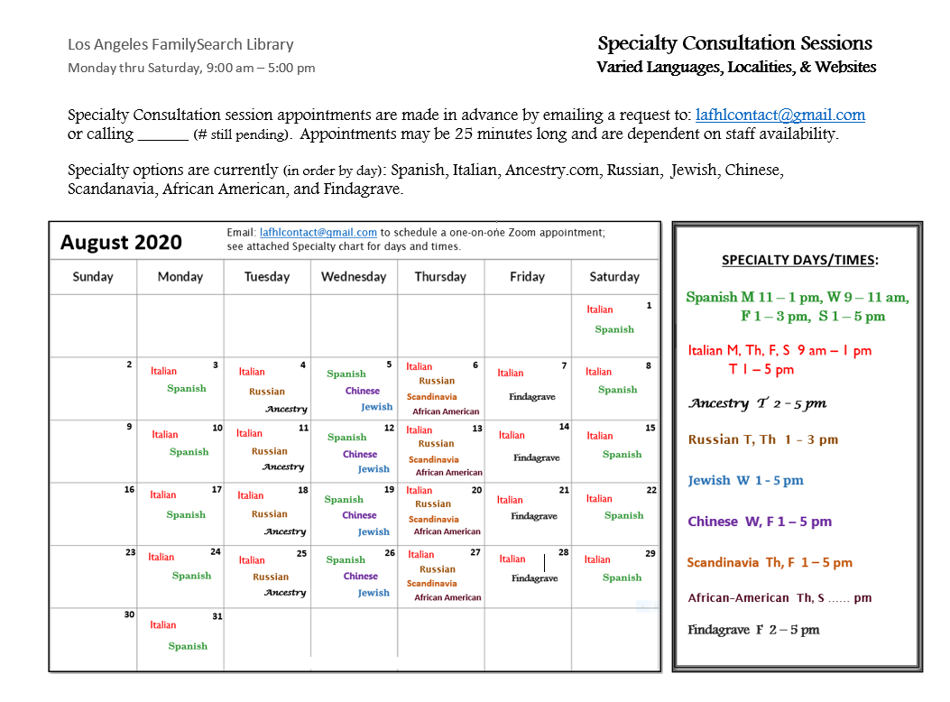 LAFSL Consultation schedule (in progress) with Specialties Aug 2020